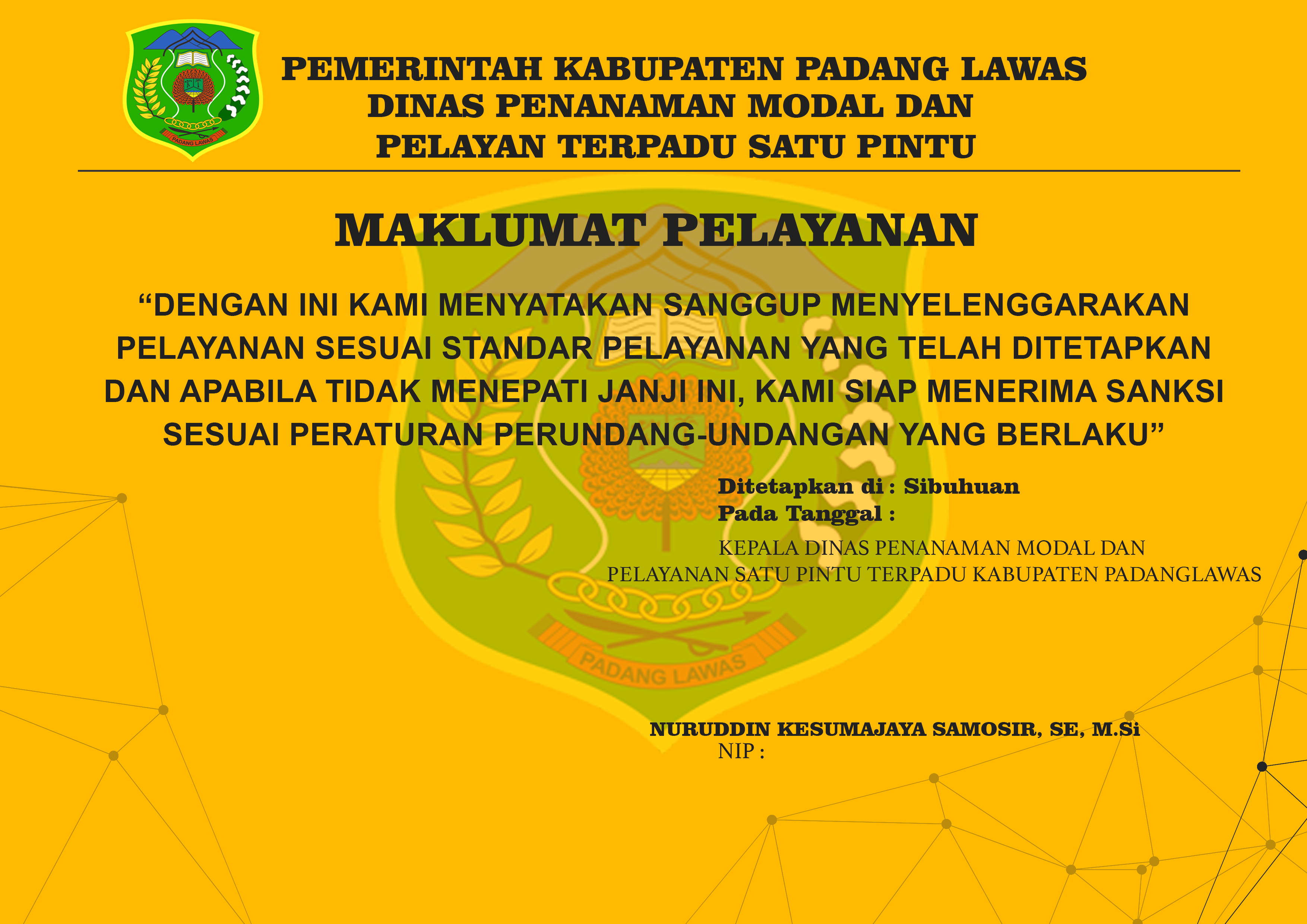 PELUANG INVESTASI Informasi Seputar Peluang Investasi INFORMASI PERIZINAN Perizinan dan Non Perizinan REGULASI Penanaman Modal dan Perizinan BeritaSyarat PerizinanFormulir PerizinanBerita BERITA & PENGUMUMAN Syarat Perizinan SYARAT PERIZINAN SYARAT IZIN PRAKTIKUM APOTEKER Sep 21, 2021 SYARAT IZIN PRAKTIKUM BIDAN MANDIRI Sep 20, 2021 Formulir Perizinan DOWNLOAD Sicantik Cloud Jun 7, 2022 OSS Mar 4, 2022 KLASIFIKASI BAKU LAPANGAN USAHA INDONESIA (KBLI) NOMOR 2 TAHUN 2020 Mar 3, 2022 FORMULIR PERMOHONAN izin praktik kerja tenaga kesehatan Sep 24, 2021 MAKLUMAT PELAYANAN Pengajuan Permohonan PENUNJUK ARAH